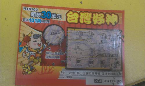 討論版列表 » 刮刮樂討論版 » [分享] (09-11) 台灣好神100號~400元 回應本話題 發表新話題