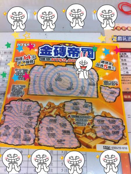 [分享] (10-08) 金磚帝國剛剛在夜市裡的彩券行刮到的!贏2480元!