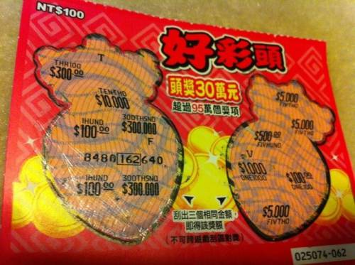 [分享] (10-11) 這張大概是去年底我老婆買一張就中,也是她刮刮樂第一次的大獎
