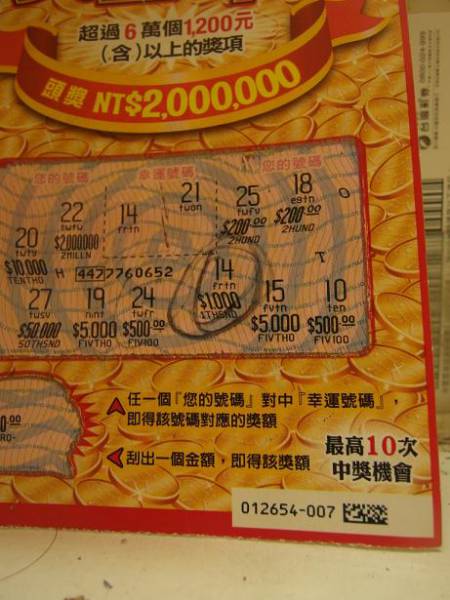加幣原因:花時間PO中獎彩券,共同分享)))運氣真好)))(恭喜哟﹗)))