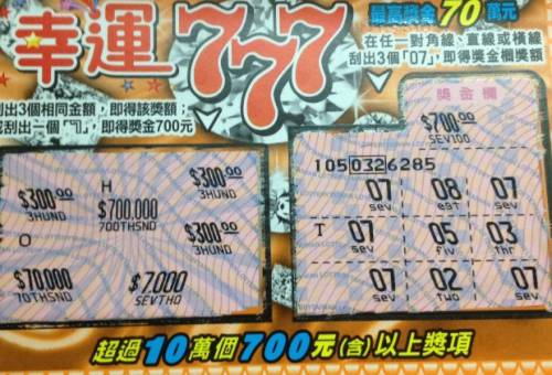 討論版列表 » 刮刮樂討論版 » [分享] (10-20) 幸運777 回應本話題 發表新話題