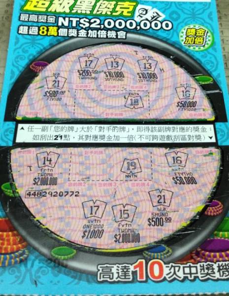 討論版列表 » 刮刮樂討論版 » [分享] (10-26) 超級黑傑克TTH! 好開心 回應本話題 發表新話題