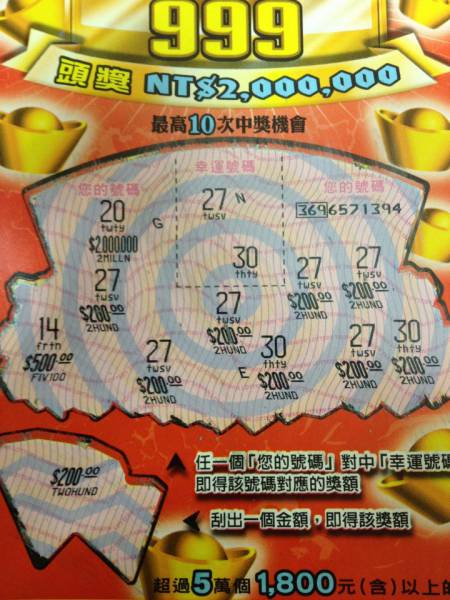 討論版列表 » 刮刮樂討論版 » [分享] (11-01) oh~ya金鑚999 回應本話題 發表新話題