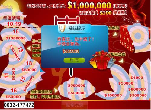 恭禧中獎,順利抱走彩金!