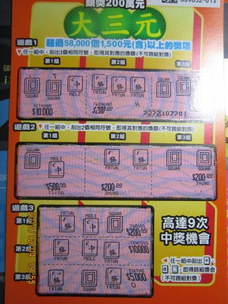 討論版列表 » 刮刮樂討論版 » [分享] (12-05) 大三元 THO 回應本話題 發表新話題
