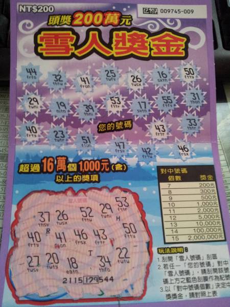 討論版列表 » 刮刮樂討論版 » [求助] (01-09) 300元 回應本話題 發表新話題