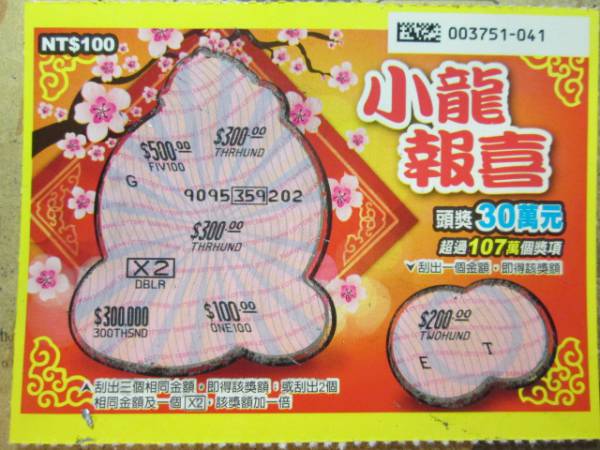討論版列表 » 刮刮樂討論版 » [分享] (01-13) 初登場!小龍報喜800 回應本話題 發表新話題