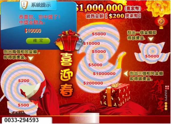 [分享] (01-31) 線上刮刮樂─贏蛇喜迎春
