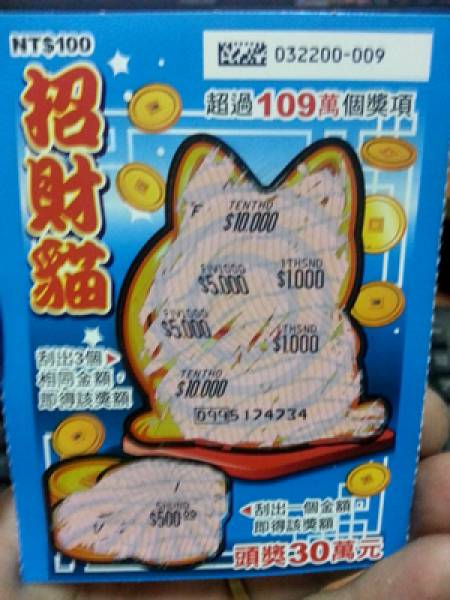討論版列表 » 刮刮樂討論版 » [分享] (02-02) 招財貓 500大洋^^ 回應本話題 發表新話題