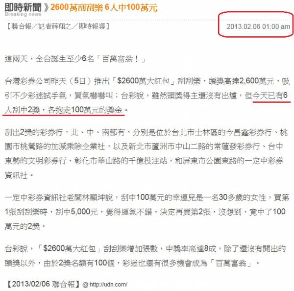 [分享] (02-07) 2.6千萬大紅包 新聞報導