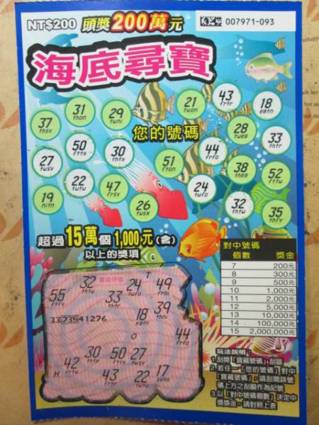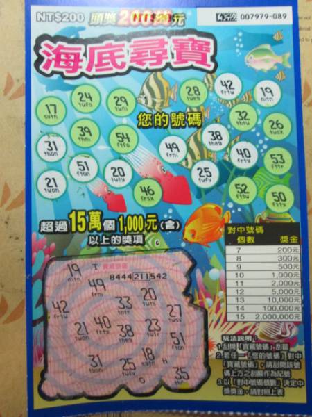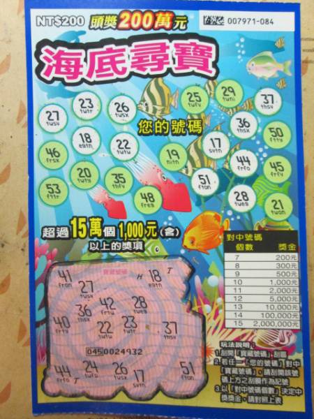 前次出的海底尋寶,先後買的前20張其實狀況很慘,只中了1張1000元還賠了1900。今天剛好把手頭的零錢換成千元鈔就再買了4張,總算轉虧為盈,不過這次在這款真的是太冒險了。