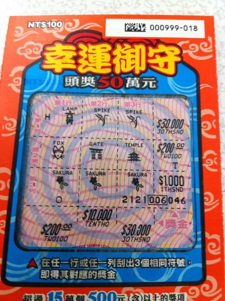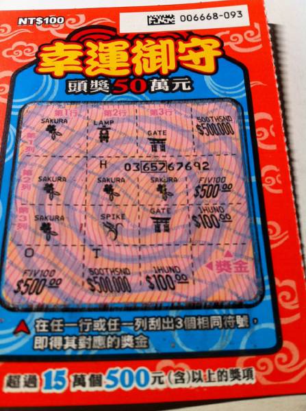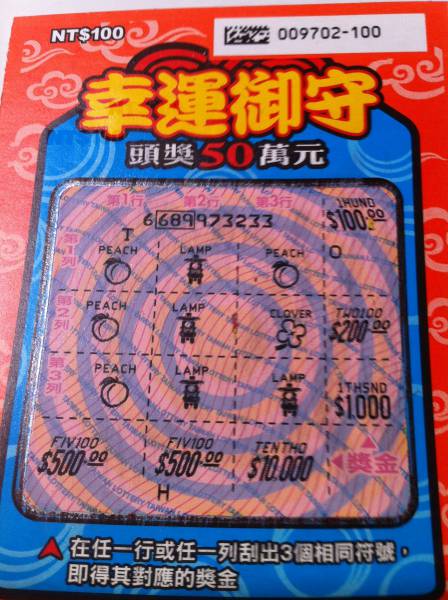 討論版列表 » 刮刮樂討論版 » [分享] (03-06) 幸運御守,,,1000元.......再接再厲~