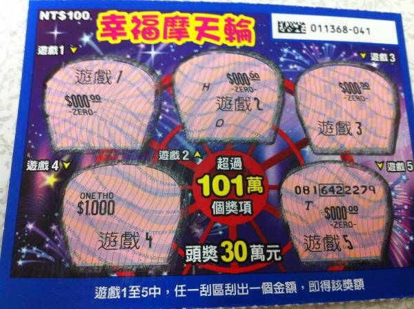 討論版列表 » 刮刮樂討論版 » [分享] (03-09) 幸福摩天輪~~~ 回應本話題 發表新話題