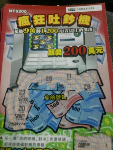 感謝分享,第一張因瘋狂吐鈔機沒ETT 8000,所以是TTH 2000, 祝下次刮中TOP 200萬,
