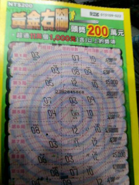 討論版列表 » 刮刮樂討論版 » [分享] (03-26) 黃金右腳的不吉利號碼 回應本話題 發表新話題