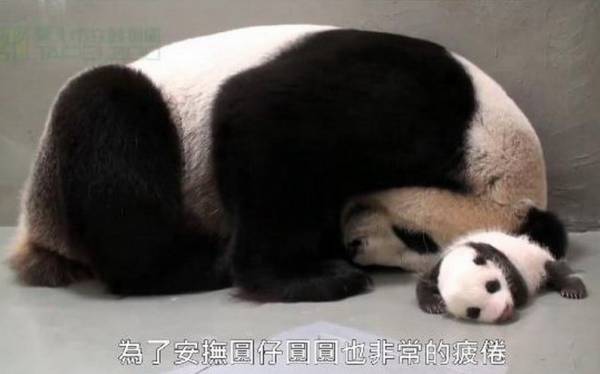 俗語說「一暝大一寸」,大貓熊寶寶圓仔就是最佳寫照!回到媽媽圓圓身邊的牠,仍然「睡姿百變」;有時全身抖動,有時嘴巴像在嚼東西,或咿咿啊啊的叫。稱職的圓圓聽到女兒有動靜,不管在哪都會立刻靠近察看,好像身上裝了「圓仔牌無線電」。