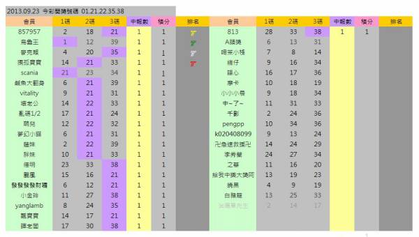 不好意思 偶開的版有報號才有計分喔 想拿積分記得在偶開的版報3個號碼嘿