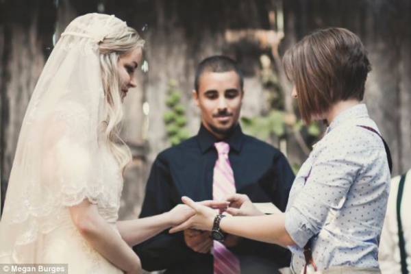但是同為25歲的Meredeith Hendrix和女朋友Kat Jackson依然在朋友和部分親屬的見證下完成了他們的儀式。