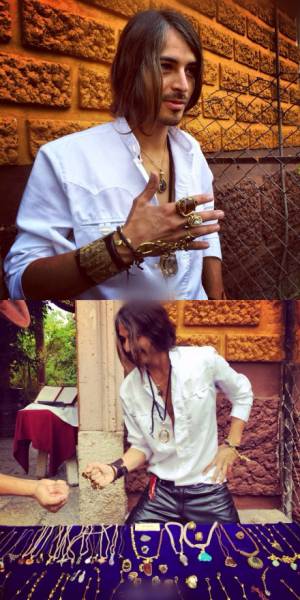 墨西哥san miguel一位當地帥哥在擺攤賣自己手工做的首飾,如果客人和他還價,就和客人猜拳決定勝負,如果他輸了,你給多少他就收多少。遊客問他年紀多大,他靦腆一笑,說時間遺忘了他,1968年出生的他,今年45歲了~Ps:大叔太帥了!!!