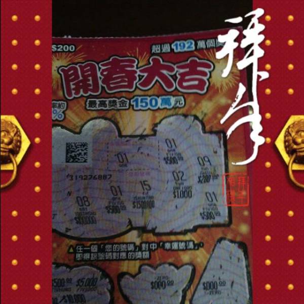 今天買4張 開春大吉 中1張200元 1張1500元 2張沒中 最大獎=1500元
