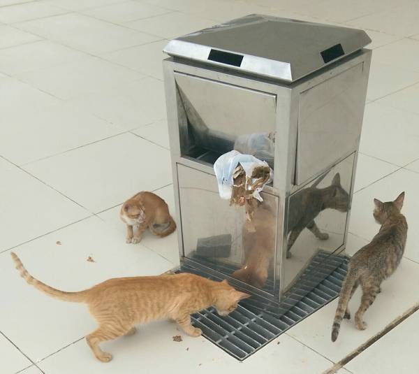 圍繞著垃圾筒吃骨頭(這是我在國外拍的照片)與奧索貓仔及大家分享