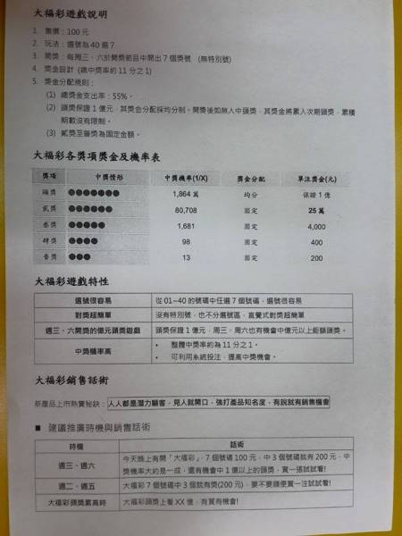 中頭獎的機率跟大樂透差不多,可是這張卻要賣100 ?
