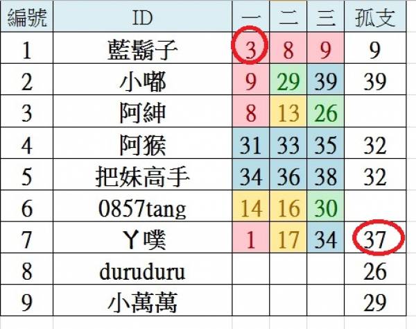 [分享] (07-04) 今彩539 『PK3 & 孤支』 (7/2結果)