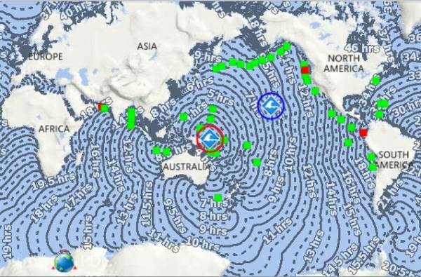 巴紐剛好是正對面,不清楚是否有陸地擋住