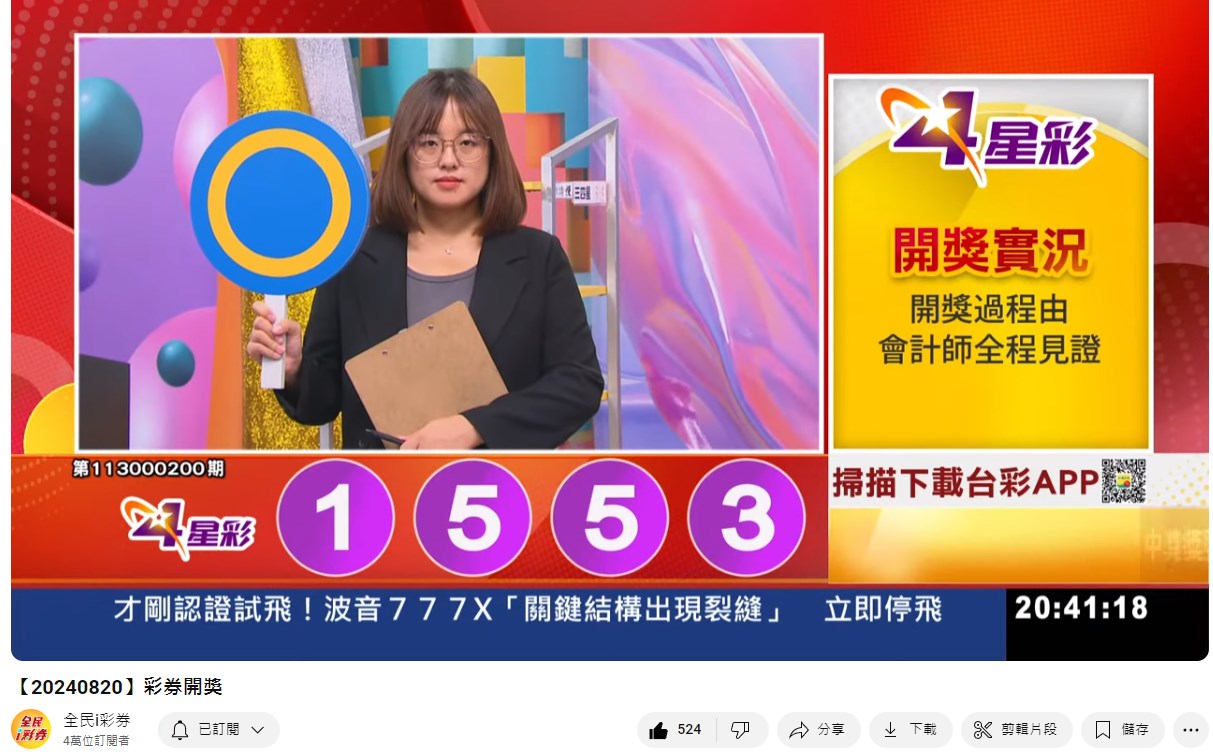 備註: 台彩因給全民兌獎方便,會在電視節目播完後,於全民i彩券YT官方頻道