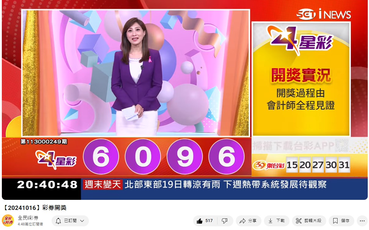 備註: 台彩因給全民兌獎方便,會在電視節目播完後,於全民i彩券YT官方頻道