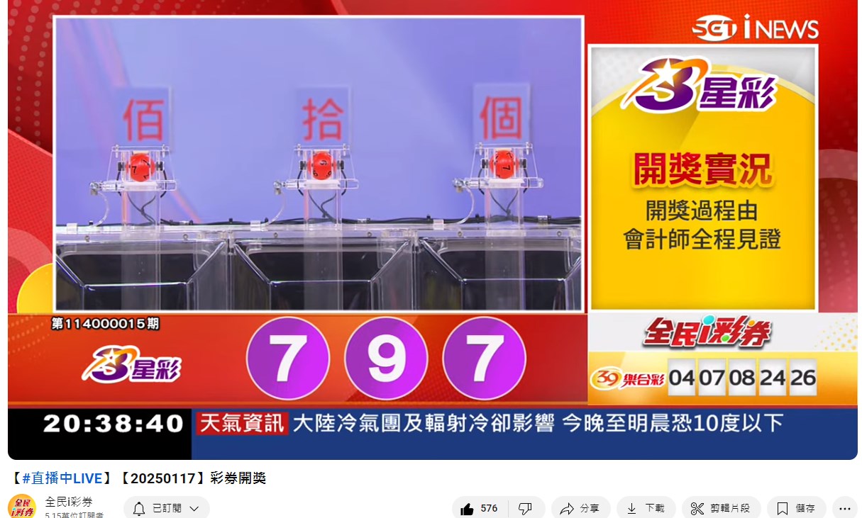 專區【全民i彩券】台灣彩券開獎實況轉播 威力彩、今彩539、三星彩、四星彩 |三立新聞網 SETN.com - YouTube