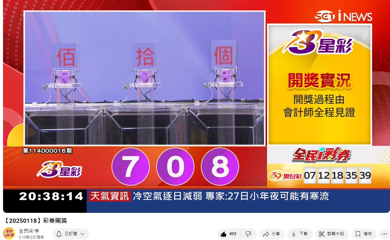 114年1月18日即時開獎 來自全民i彩券YT [三立新聞網SETN][1月19日重播]