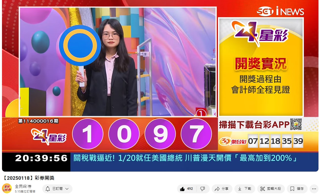 備註: 台彩因給全民兌獎方便,會在電視節目播完後,於全民i彩券YT官方頻道