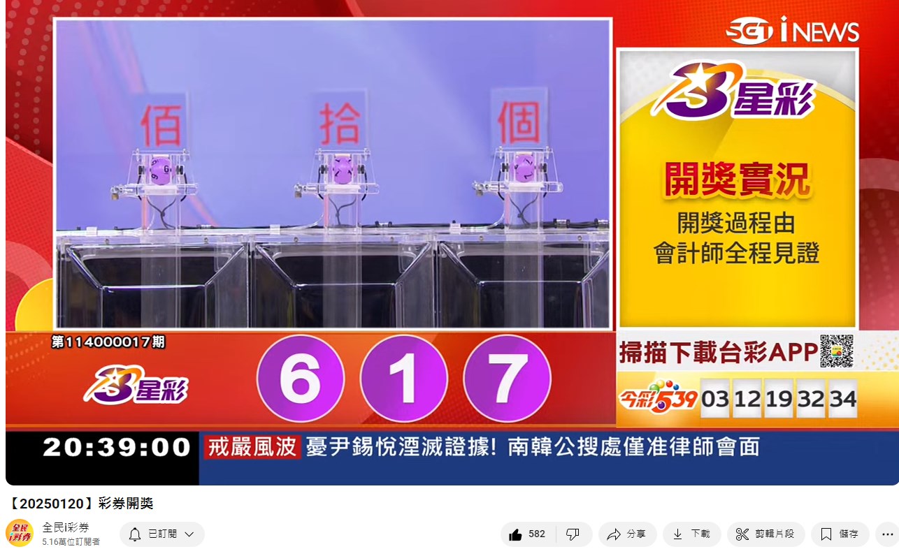 專區【全民i彩券】台灣彩券開獎實況轉播 威力彩、今彩539、三星彩、四星彩 |三立新聞網 SETN.com - YouTube