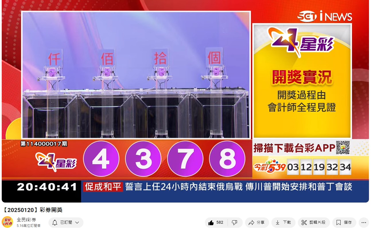 專區【全民i彩券】台灣彩券開獎實況轉播 威力彩、今彩539、三星彩、四星彩 |三立新聞網 SETN.com - YouTube