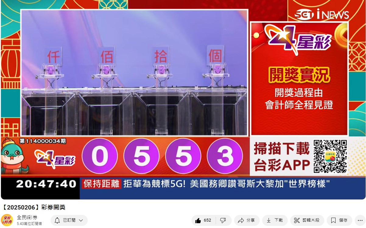 備註: 台彩因給全民兌獎方便,會在電視節目播完後,於全民i彩券YT官方頻道