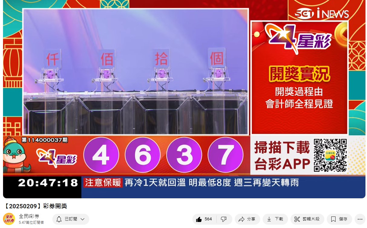 備註: 台彩因給全民兌獎方便,會在電視節目播完後,於全民i彩券YT官方頻道