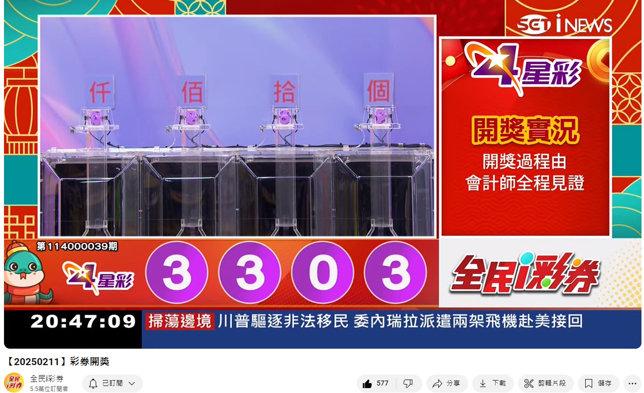 專區【全民i彩券】台灣彩券開獎實況轉播 威力彩、今彩539、三星彩、四星彩 |三立新聞網 SETN.com - YouTube