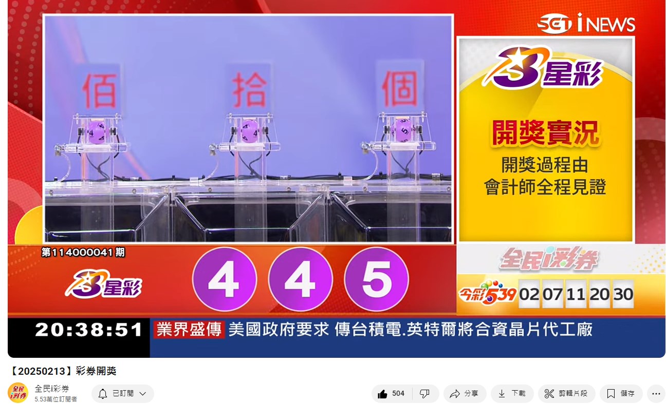 114年2月13日彩券開獎 來自全民i彩券YT [三立新聞網SETN][2月14日重播]