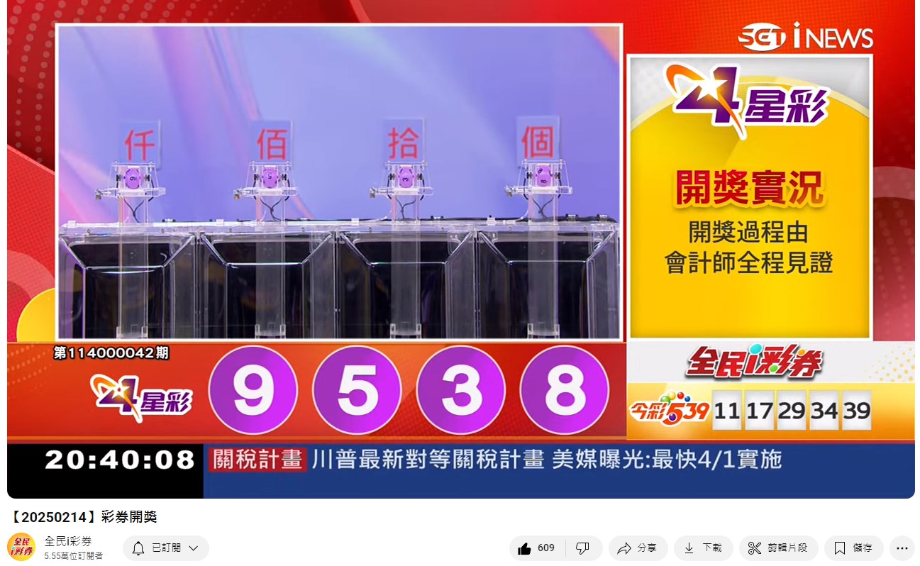專區【全民i彩券】台灣彩券開獎實況轉播 威力彩、今彩539、三星彩、四星彩 |三立新聞網 SETN.com - YouTube