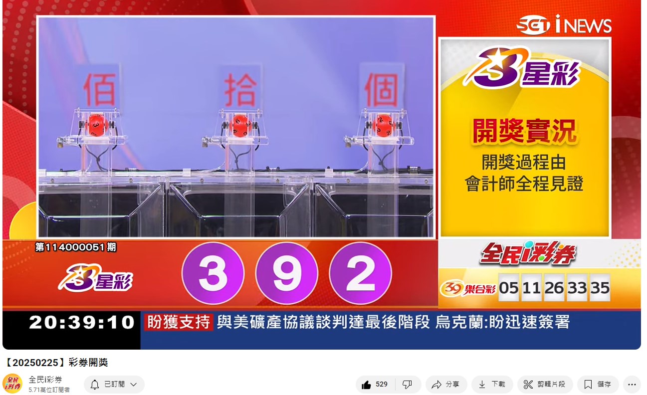 專區【全民i彩券】台灣彩券開獎實況轉播 威力彩、今彩539、三星彩、四星彩 |三立新聞網 SETN.com - YouTube