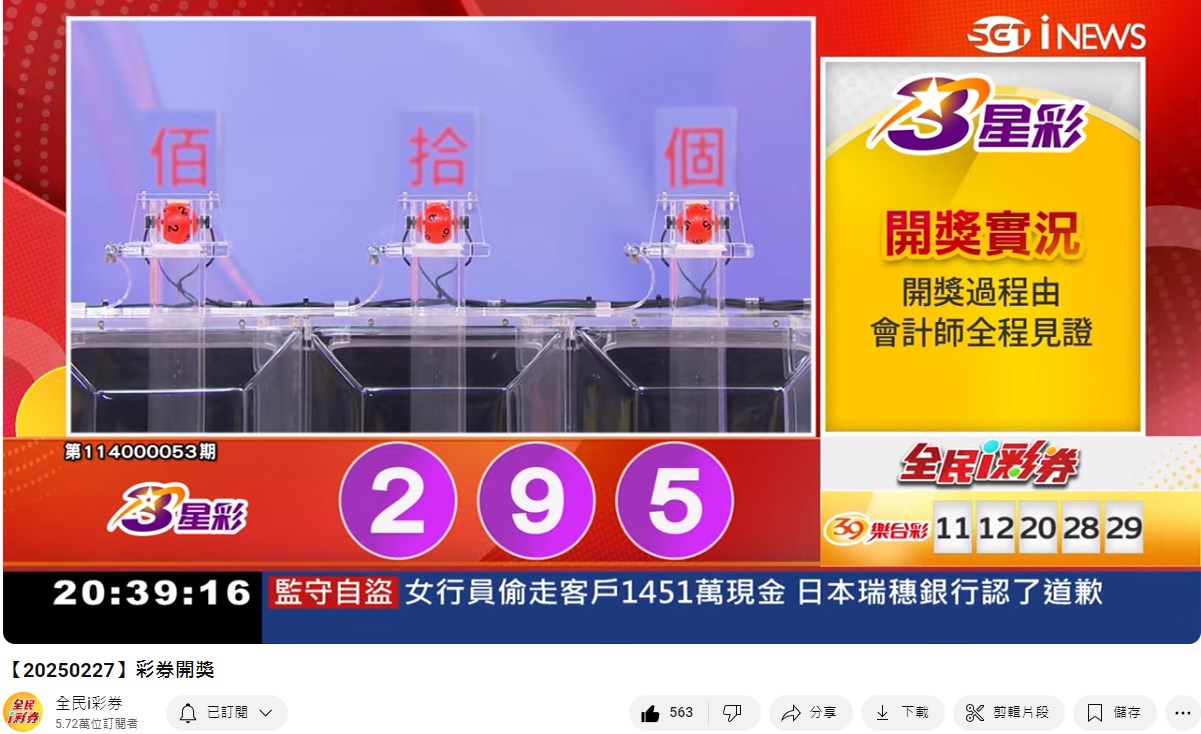 專區【全民i彩券】台灣彩券開獎實況轉播 威力彩、今彩539、三星彩、四星彩 |三立新聞網 SETN.com - YouTube