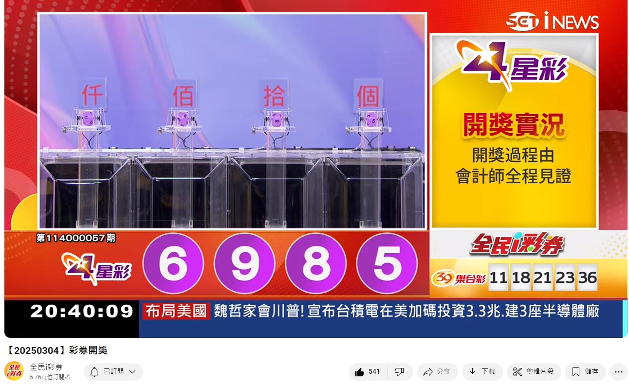 專區【全民i彩券】台灣彩券開獎實況轉播 威力彩、今彩539、三星彩、四星彩 |三立新聞網 SETN.com - YouTube