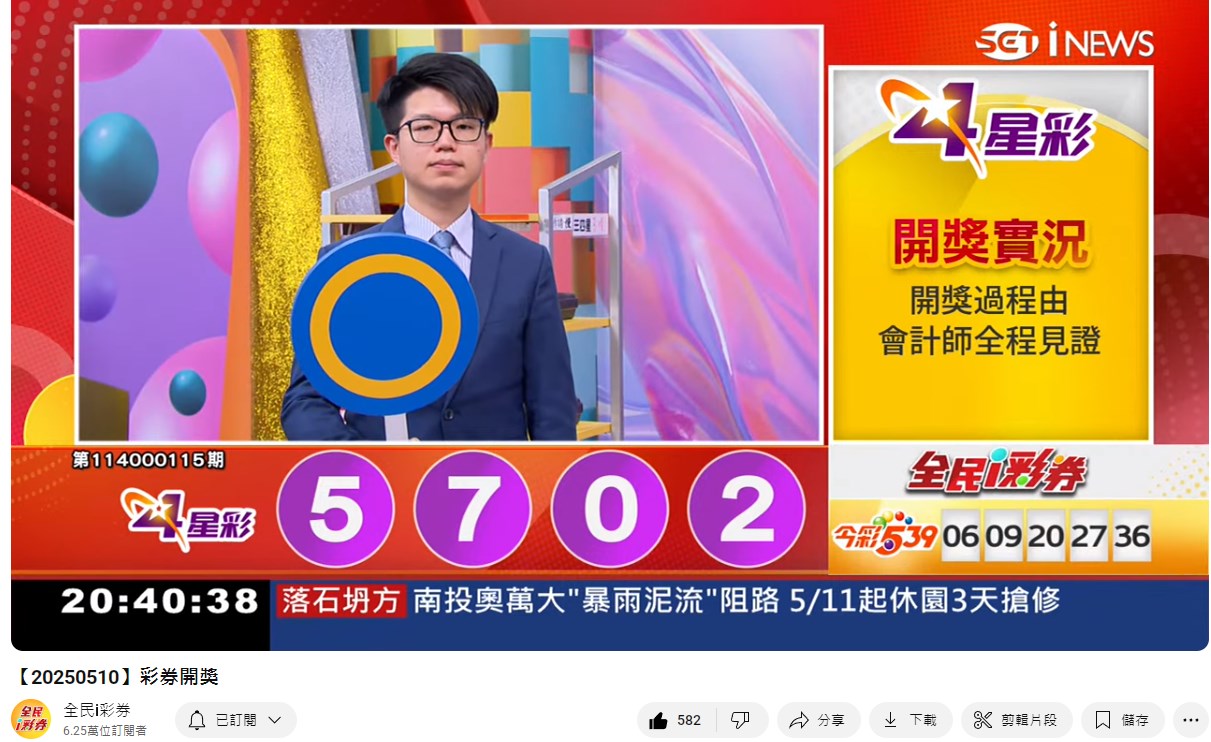 114年5月10日彩券開獎 來自全民i彩券YT [三立新聞網SETN][5月11日重播]