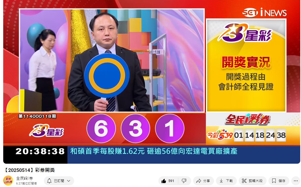 專區【全民i彩券】台灣彩券開獎實況轉播 威力彩、今彩539、三星彩、四星彩 |三立新聞網 SETN.com - YouTube