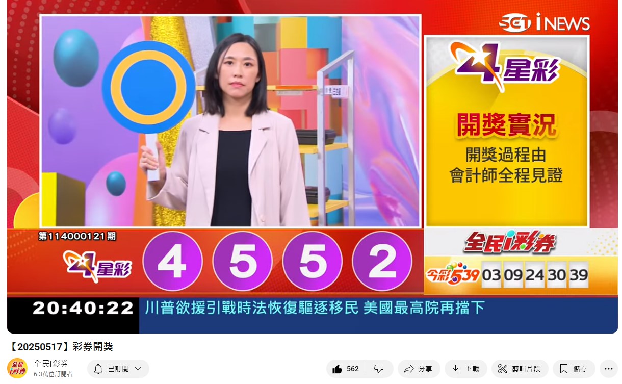 114年5月17日彩券開獎 來自全民i彩券YT [三立新聞網SETN][5月18日重播]