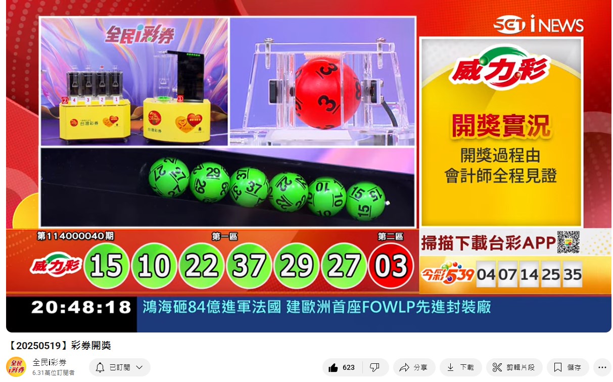 專區【全民i彩券】台灣彩券開獎實況轉播 威力彩、今彩539、三星彩、四星彩 |三立新聞網 SETN.com - YouTube