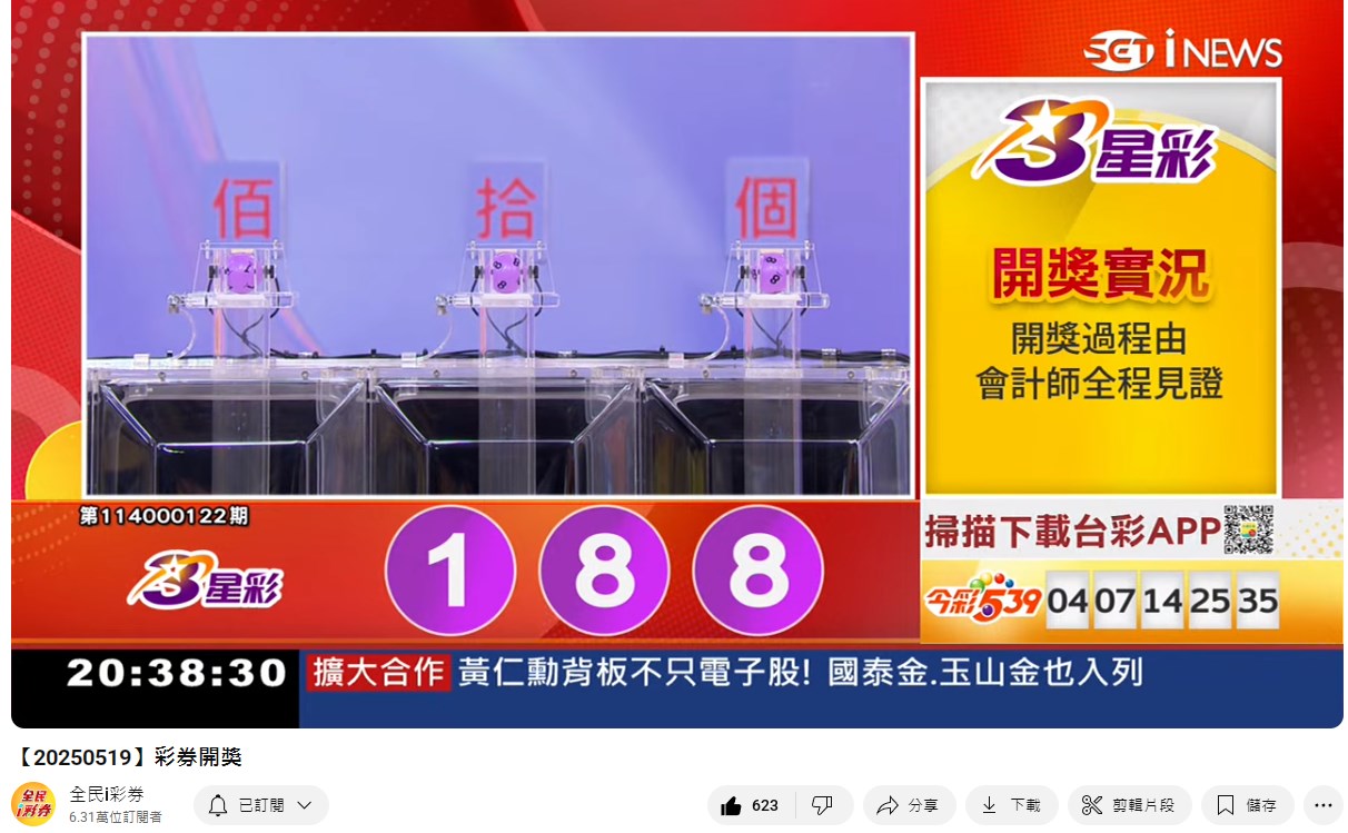 備註: 台彩因給全民兌獎方便,會在電視節目播完後,於全民i彩券YT官方頻道