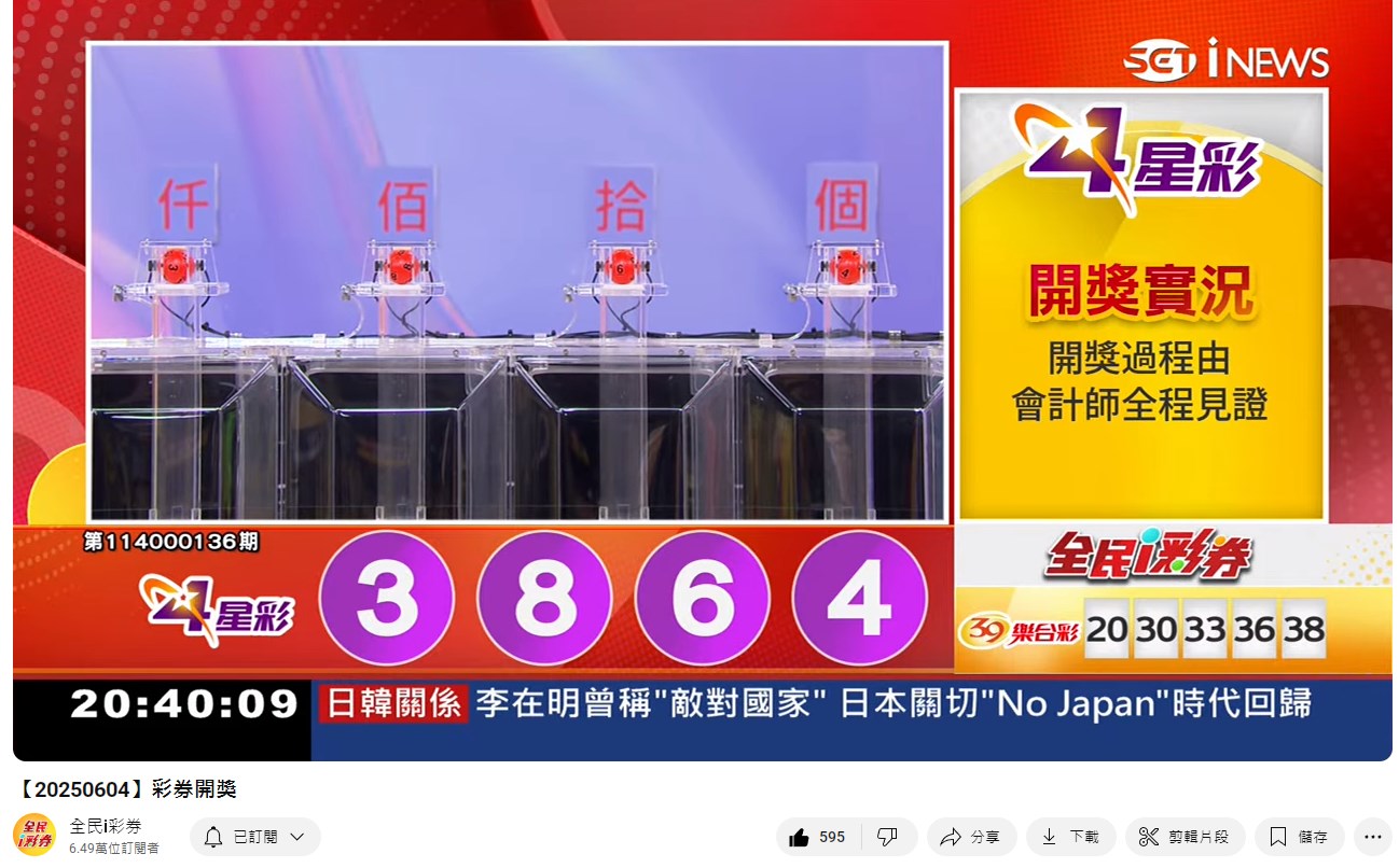 備註: 台彩因給全民兌獎方便,會在電視節目播完後,於全民i彩券YT官方頻道