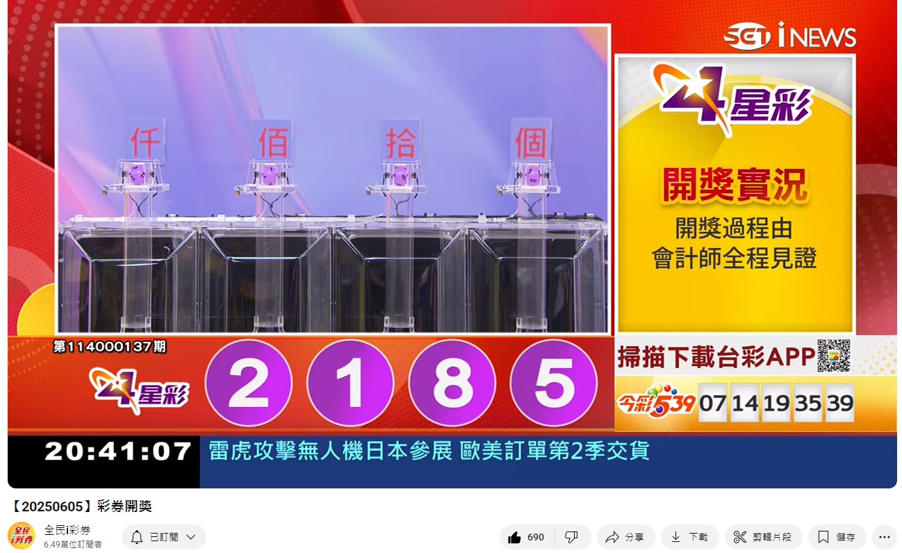 114年6月04日彩券開獎 來自全民i彩券YT [三立新聞網SETN][6月05日重播]